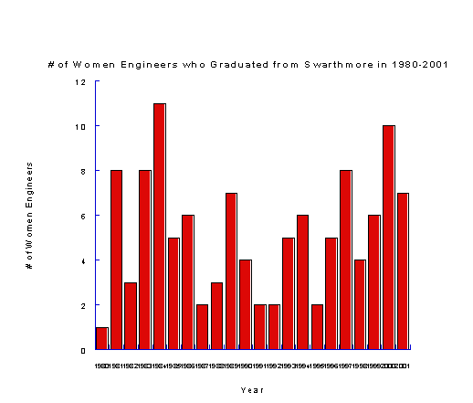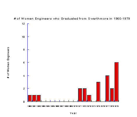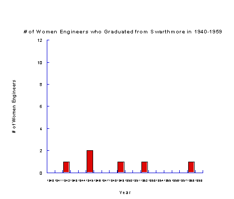 "We asked these eleven women to tell us something about their activities since graduation, and although the sample is small, we can draw some conclusions. The majority of them worked in engineering for an average of about 2 ½ years after graduation. Two have been continuously involved in engineering since receiving their degree. Four have pursued advanced studies, but none has earned an advanced degree. Those who gave up engineering after a few years appear to have done so in order to raise families and those who married have, on the average, about two children. Half of them meet their husbands at Swarthmore." I disagree with this article because from my data