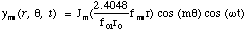 Jm(kr0) = 0. If the values of the argument of the mth order Bessel function Jm that cause that function to equal zero are designated by jmn, then the corresponding values of k assume discrete values given by kmn = jmn/r0. The physical motion of the normal modes designated by the integer pairs (m, n) is therefore: